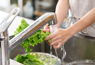 優れた浄⽔⼒で不純物を除去。さらにお⽔の飲み⼼地を調え、おいしく仕上げます。毎⽇約10.5L(総ろ過⽔量2,520L)浄⽔可能なので飲み物はもちろん、毎⽇のお料理にも気軽に使えます。