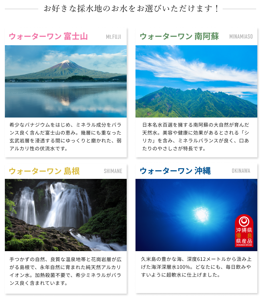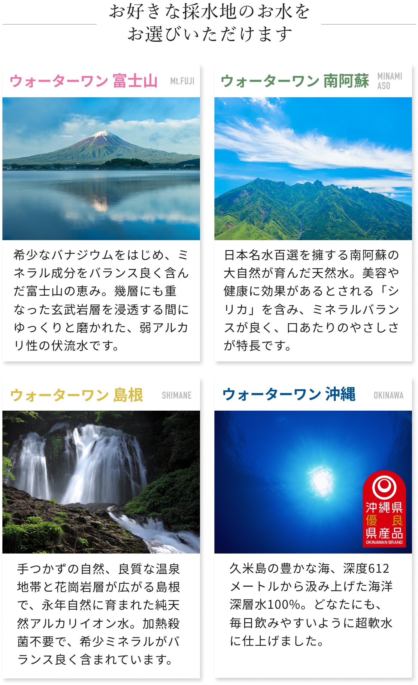 - 富士山・南阿蘇・島根・沖縄の採水地から